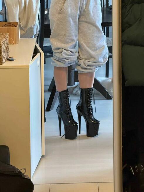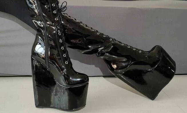 Kozaki na wysokim koturnie czarne wiązane wys. koturny 22 cm Dostępne rozmiary, ...
