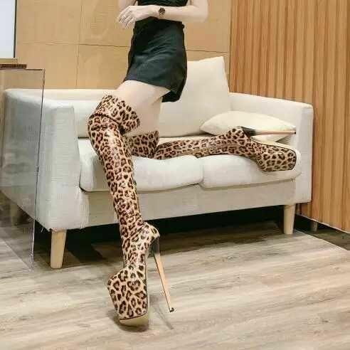 Kozaki na wysokim obcasie 19 cm panterka materiał: PU -zamek błyskawiczny wysokość obcasa 19 cm Kolor ...